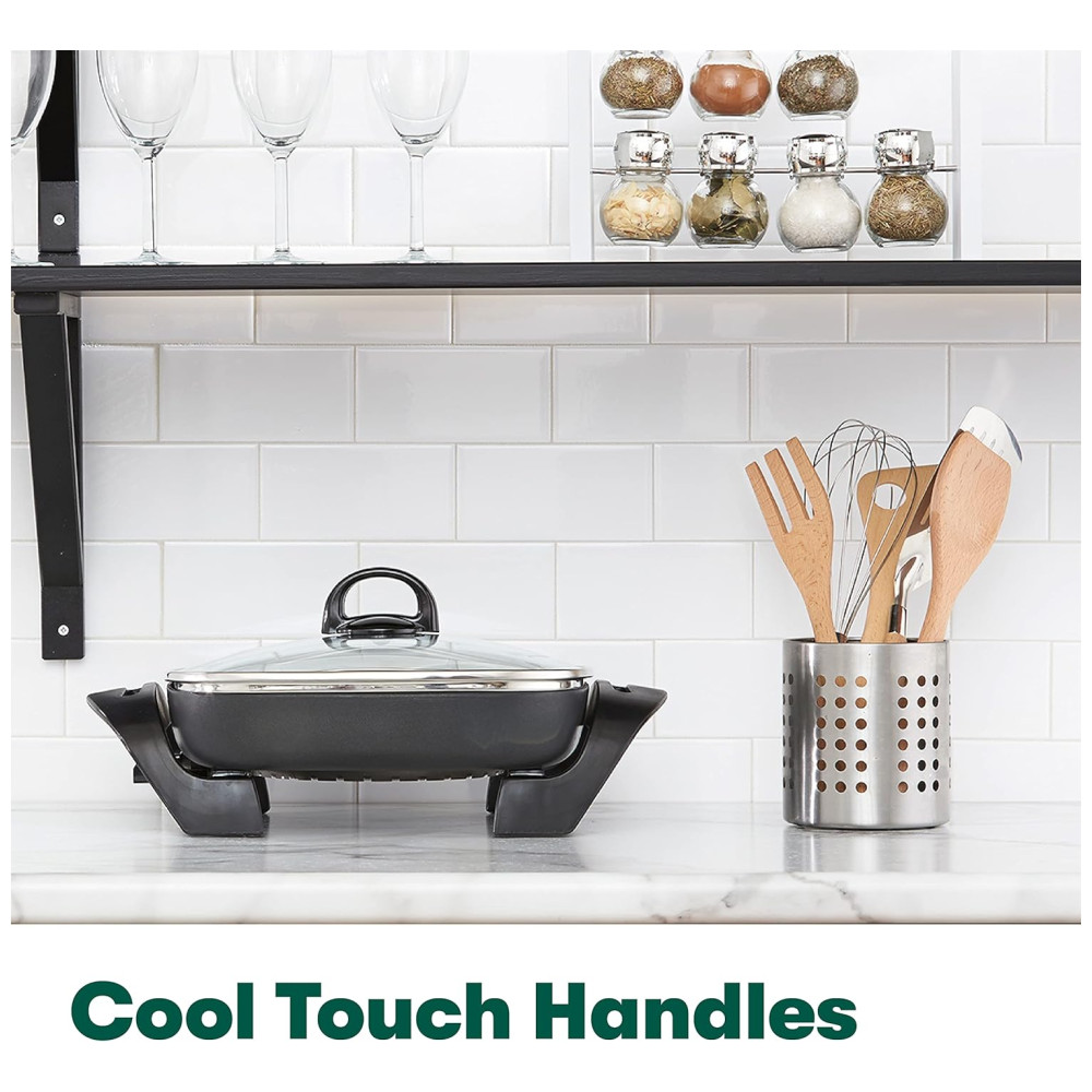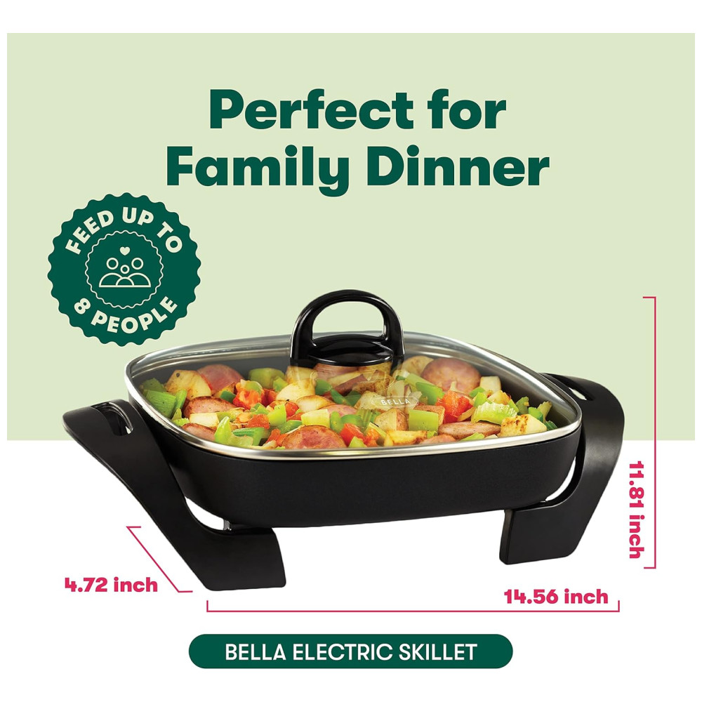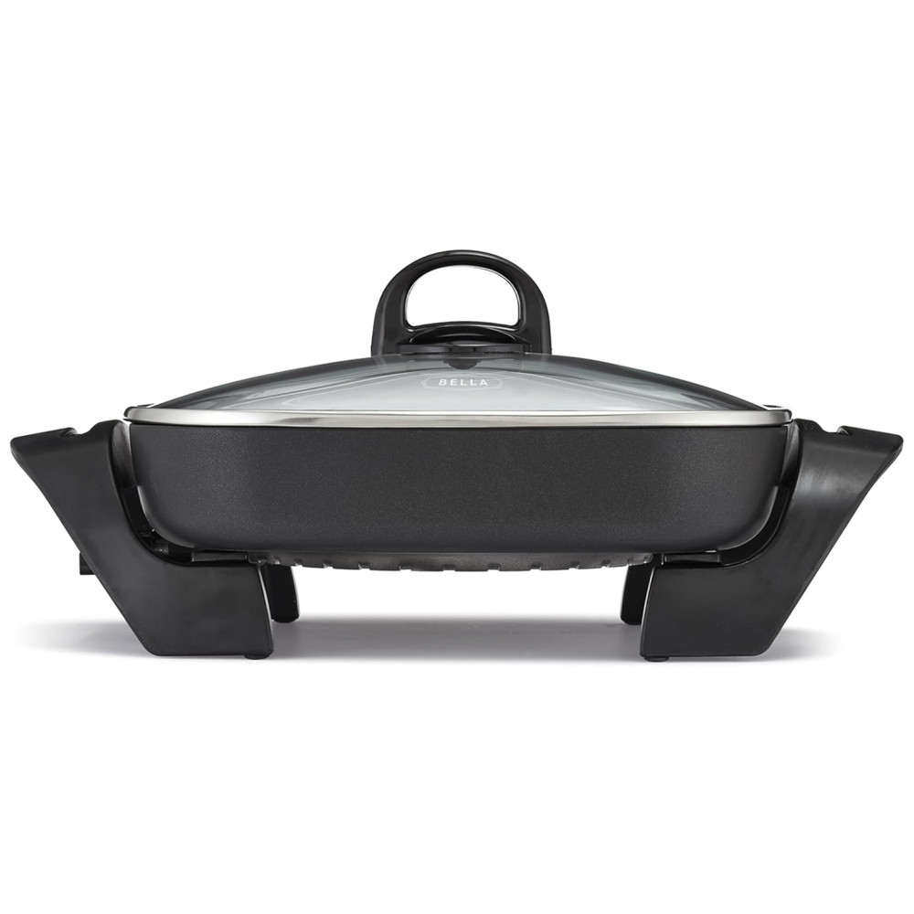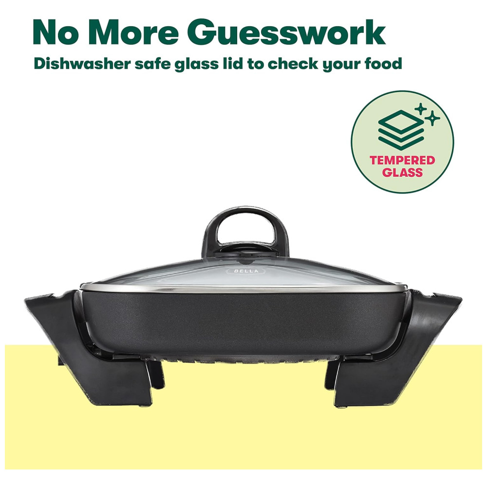 Frigideira Elétrica BELLA 3048 cm: Tampa de Vidro Revestimento Antiaderente Alças Frias Sonda Removível Lava-Louças.