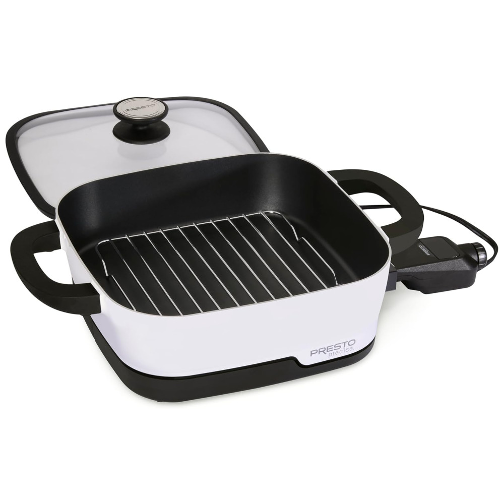 Frigideira Elétrica com Tampa de Vidro Revestimento Antiaderente e Controle de Temperatura Digital 110V 1000W Presto 07118 Branca