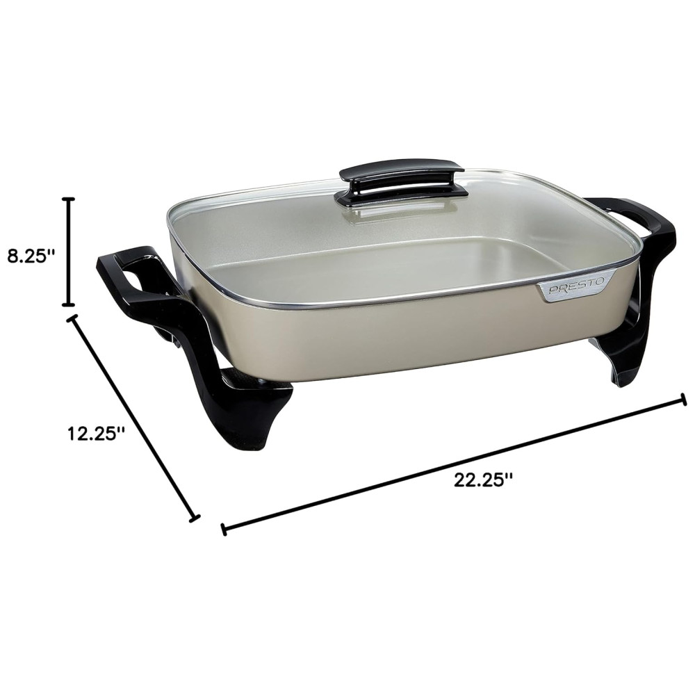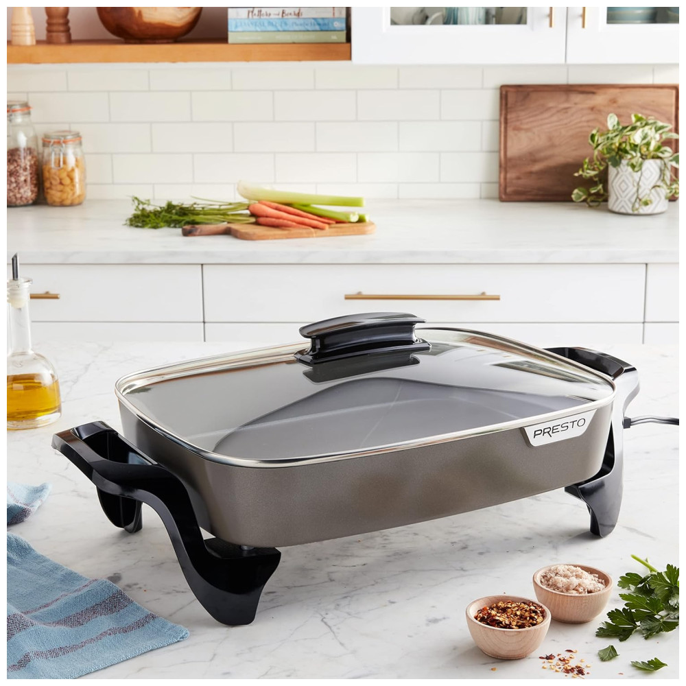 Transforme suas refeições com a Frigideira Elétrica Presto em Cerâmica, projetada para oferecer versatilidade e praticidade na sua cozinha. Seja para fritar, assar, guisar ou preparar deliciosas caçarolas, esta frigideira é perfeita para todas as suas necessidades culinárias.