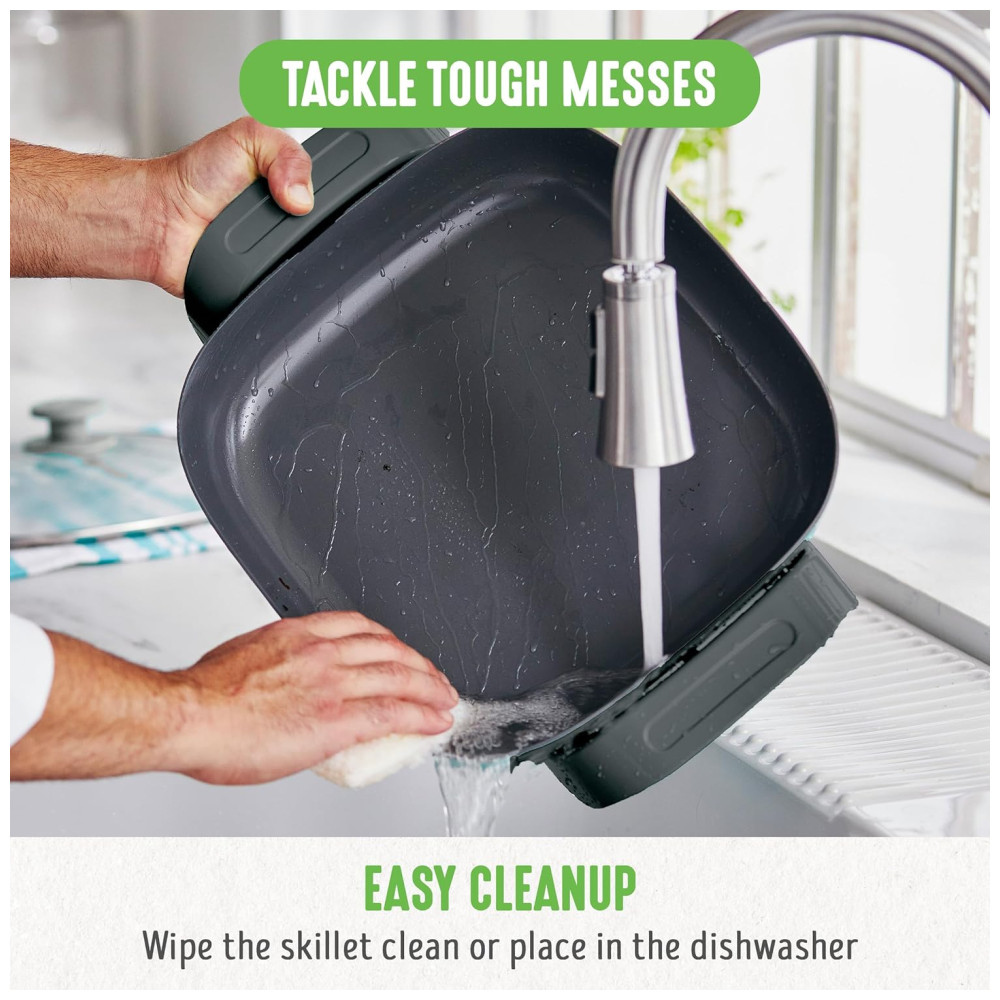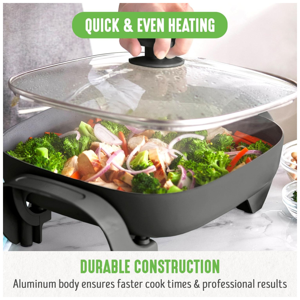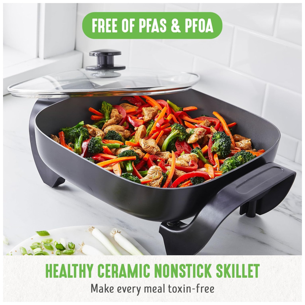Frigideira Elétrica Quadrada GreenLife 30cm 47L Tampa de Vidro com Saída de Vapor Revestimento Antiaderente Cerâmico sem Substâncias Tóxicas Controle de Temperatura