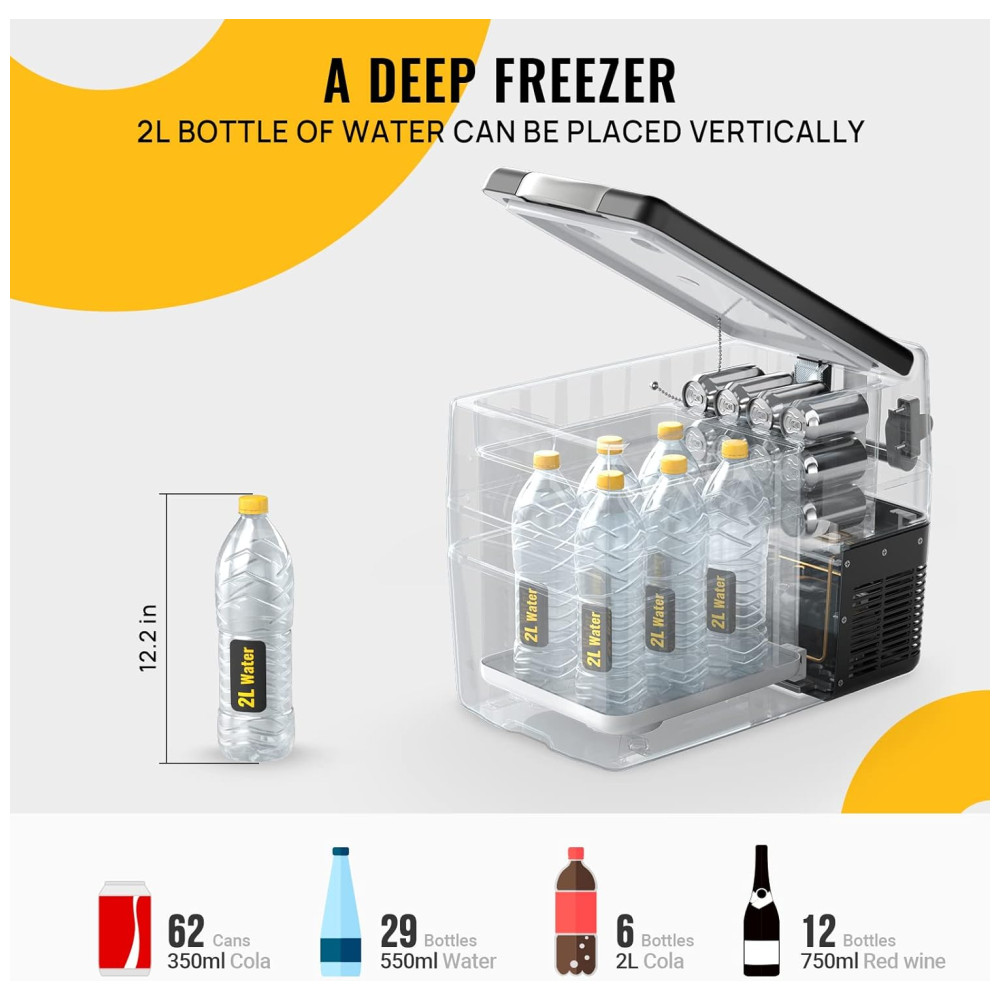 POR QUE MELHOR DO QUE UM REFRIGERADOR este refrigerador de carro de 9 Quart, 8 Litros pode atingir uma temperatura de congelamento com a tecnologia de refrigeração de compressor, nenhum gelo é necessário enquanto o refrigerador tradicional precisa de libras de gelo e reduz a capacidade de uso. Também é prático e portátil sem cubos de gelo.
