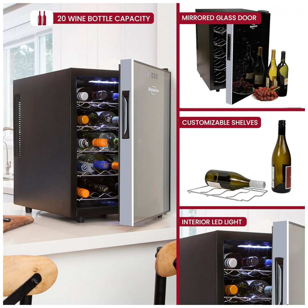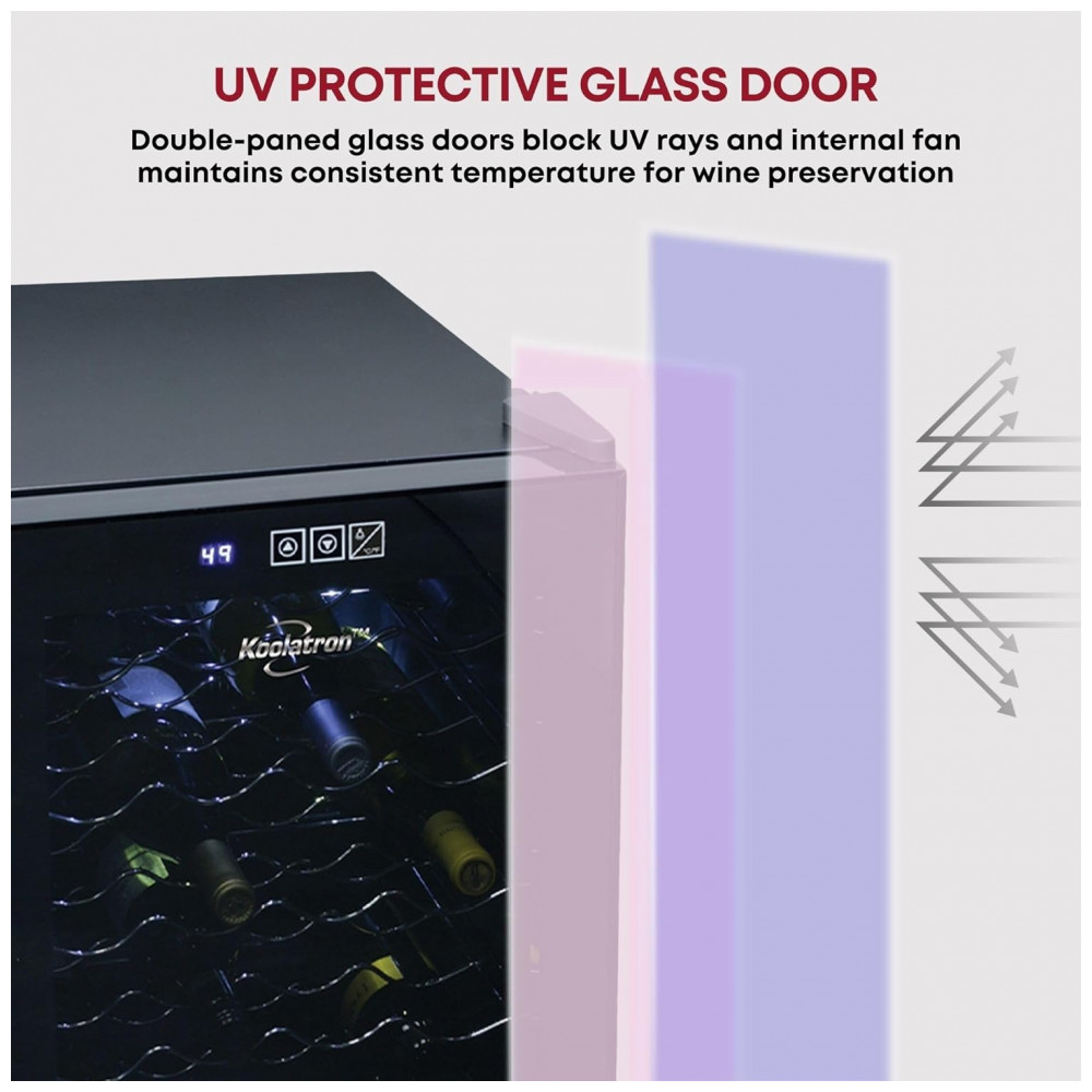 Frigobar Koolatron para Vinhos Adega para 20 Garrafas de Champanhe Vinho Tinto e Branco Porta de Vidro Duplo 48 Litros