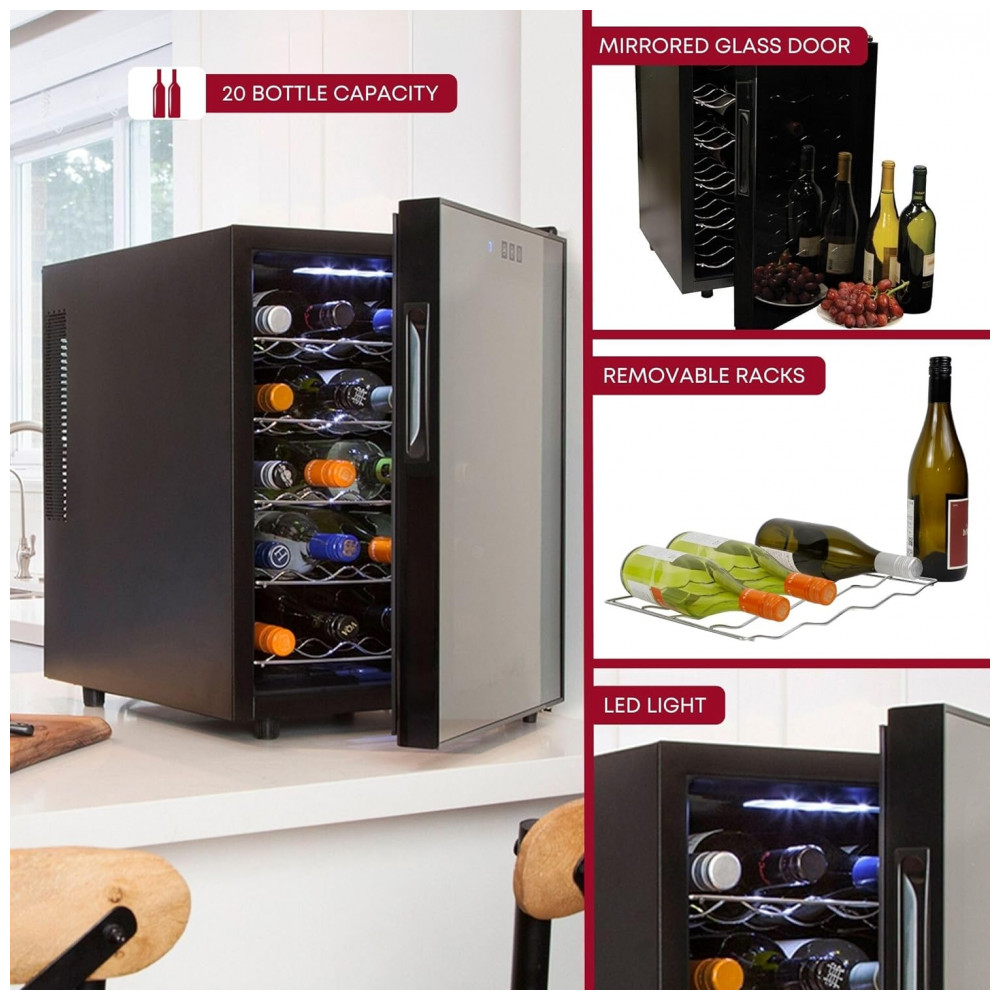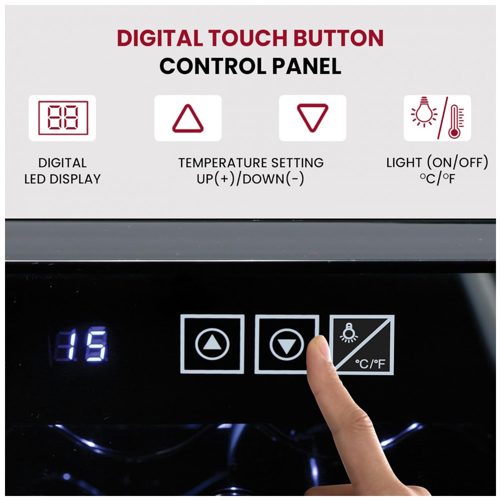 Desfrute de tecnologia de resfriamento termoelétrico premium com a Adega Koolatron para 20 garrafas. Este refrigerador compacto oferece um desempenho aprimorado e gerenciamento preciso de temperatura, mantendo os vinhos entre 8°C e 18°C sem vibrações. Controle eficaz de temperatura mantém as condições ideais para preservação de vinhos tintos e brancos, evitando flutuações prejudiciais. Com design compacto, é perfeito para espaços pequenos, como cozinhas, salas de jantar ou apartamentos. Controles de tela sensível ao toque permitem ajustar a temperatura e acender a luz interna sem abrir a porta. A porta de vidro duplo protege contra raios UV, enquanto a iluminação interior destaca sua coleção. Aproveite suas garrafas em grande estilo!
