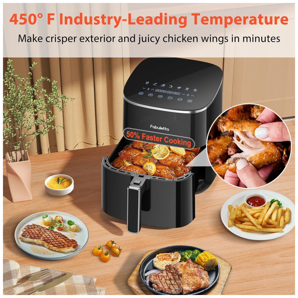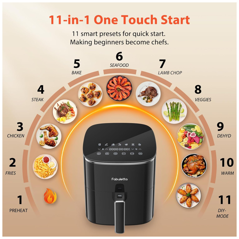 Fritadeira Air Fryer FABULETTA 11 em 1 56L 230°C Max Crisp cesto antiaderente e lavável lembrete para agitar funções assar grelhar desidratar