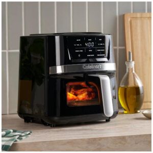 Prepare de simples lanches a refeições principais com a versátil Fritadeira Cuisinart Air Fryer. A tecnologia AirAdvantage garante resultados mais saudáveis, crocantes e saborosos a cada uso. Com notificação para virar os alimentos no meio do cozimento e janela de visualização conveniente para o cesto da fritadeira, é fácil Fritar, Assar e Grelhar com resultados deliciosos todas as vezes. Esta fritadeira com cesto e janela elimina a gordura dos alimentos rapidamente e de forma uniforme usando ar quente, com pouco ou nenhum óleo, para preparar refeições mais saudáveis com a crocância que você adora. Três configurações pré-programadas populares, incluindo Batatas Fritas, Asinhas de Frango e Petiscos Congelados, permitem cozinhar qualquer refeição rapidamente e facilmente para toda a família.