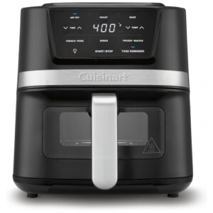 Prepare de simples lanches a refeições principais com a versátil Fritadeira Cuisinart Air Fryer. A tecnologia AirAdvantage garante resultados mais saudáveis, crocantes e saborosos a cada uso. Com notificação para virar os alimentos no meio do cozimento e janela de visualização conveniente para o cesto da fritadeira, é fácil Fritar, Assar e Grelhar com resultados deliciosos todas as vezes. Esta fritadeira com cesto e janela elimina a gordura dos alimentos rapidamente e de forma uniforme usando ar quente, com pouco ou nenhum óleo, para preparar refeições mais saudáveis com a crocância que você adora. Três configurações pré-programadas populares, incluindo Batatas Fritas, Asinhas de Frango e Petiscos Congelados, permitem cozinhar qualquer refeição rapidamente e facilmente para toda a família.