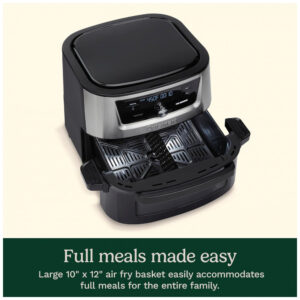 Prepare refeições familiares rapidamente com a Fritadeira de Ar Cuisinart de 9 litros, projetada com um divisor para partitionar alimentos. Seis funções, incluindo Fritar, Assar, Grelhar, Assar, Desidratar e Manter Aquecido, facilitam o preparo de uma grande variedade de pratos favoritos da família de acordo com suas preferências. Equipado com a Tecnologia AirAdvantage com montagem superior de ventilador e aquecedor para fornecer fluxo de ar quente otimizado para resultados rápidos e crocantes, este poderoso equipamento de bancada inclui práticos programas pré-definidos para asas, batatas fritas, legumes, petiscos congelados, sobras e nuggets. Desde assar brownies até assar um frango inteiro, grelhar hambúrgueres e muito mais, essa fritadeira de ar Cuisinart é essencial para a cozinha, maximizando o cardápio da família e minimizando o trabalho. CAPACIDADE FAMILIAR Esta Fritadeira de Ar Cuisinart tem uma capacidade interna de 9 litros, fornecendo espaço suficiente para cozinhar grandes lotes de alimentos, sendo adequada para famílias ou encontros. MÚLTIPLAS FUNÇÕES DE COZIMENTO Com 5 funções de cozimento, incluindo Fritar, Assar, Grelhar, Assar, Desidratar e Manter Aquecido, esta fritadeira de ar com cesto oferece versatilidade e permite que você prepare uma ampla variedade de pratos. 6 PROGRAMAS PRÉ-DEFINIDOS O visor digital e o painel de controle com discagem e 6 programas pré-definidos de Fritar simplificam o processo de cozimento, oferecendo opções fáceis de usar para alcançar resultados ideais com apenas alguns toques de botão. AMPLA FAIXA DE TEMPERATURA Com 1800 watts de potência e controle ajustável de temperatura com temperatura máxima de 230°C, este forno de fritadeira de ar Cuisinart oferece controle preciso sobre o processo de cozimento, permitindo que você atinja o nível desejado de crocância e dourado. MANTENEDOR AUTOMÁTICO O temporizador de até 60 minutos com função automática de Manter Aquecido garante que sua comida fique quente até que você esteja pronto para servir, proporcionando conveniência e flexibilidade.