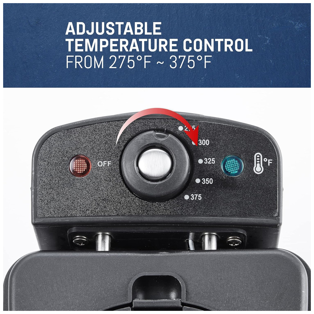 Seu potente elemento de aquecimento de 1500W aquece rapidamente os 1,89 litros de capacidade da fritadeira em poucos minutos! Além disso, mantém automaticamente a temperatura correta do óleo, sem necessidade de ajustes constantes.