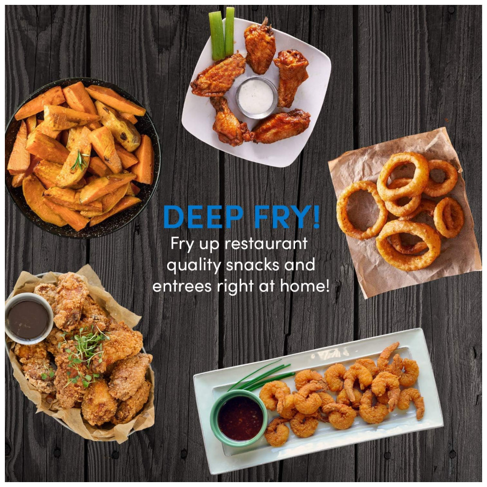 Com o controle de temperatura ajustável, você pode definir a temperatura conforme a necessidade de cada fritura. Faça batatas fritas, anéis de cebola, frango frito e uma variedade de outros alimentos fritos com facilidade.