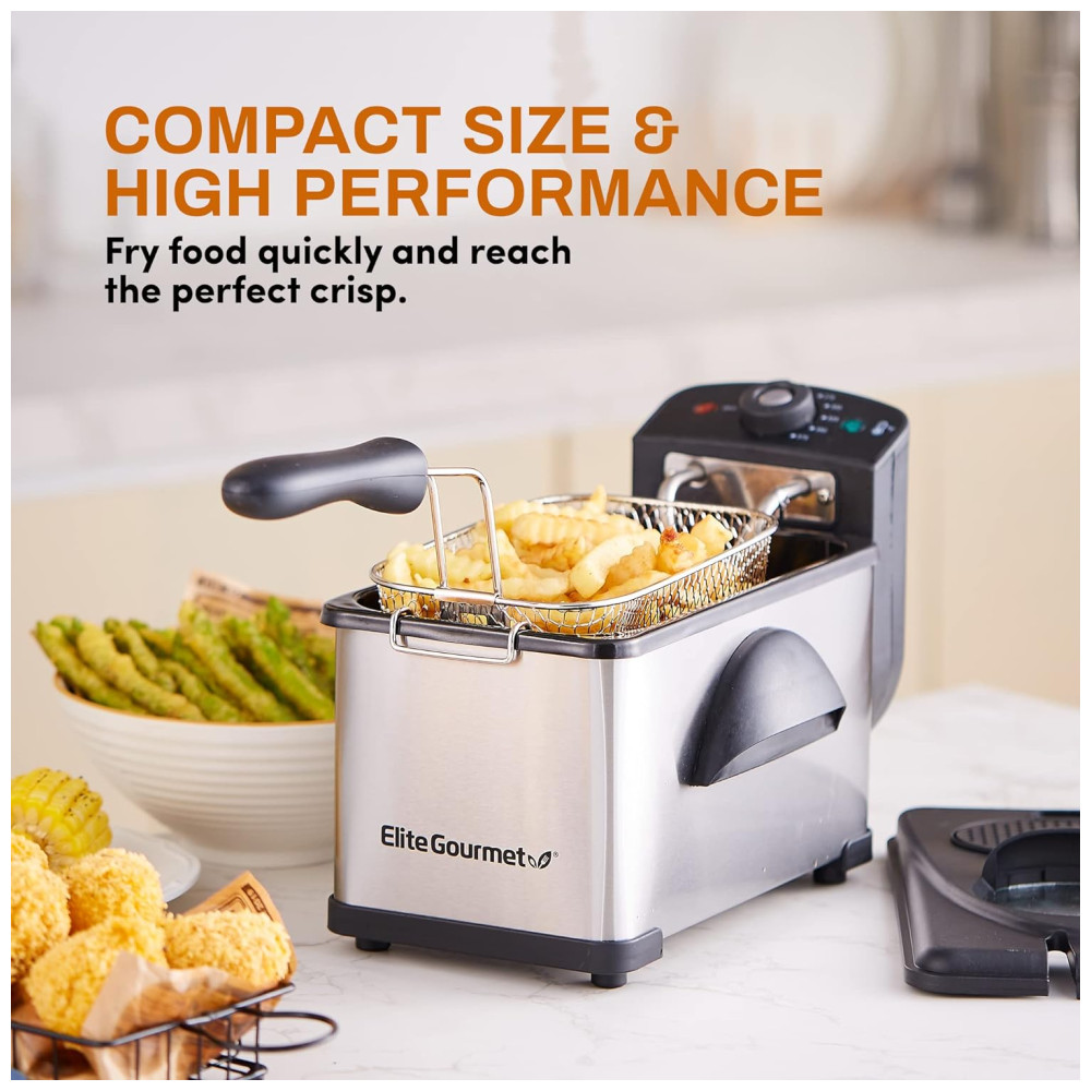Fritadeira Elétrica 2L em Aço Inoxidável 1500W 110V Elite Gourmet EDF2100 Prata