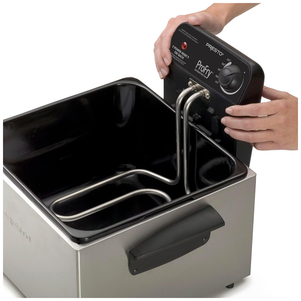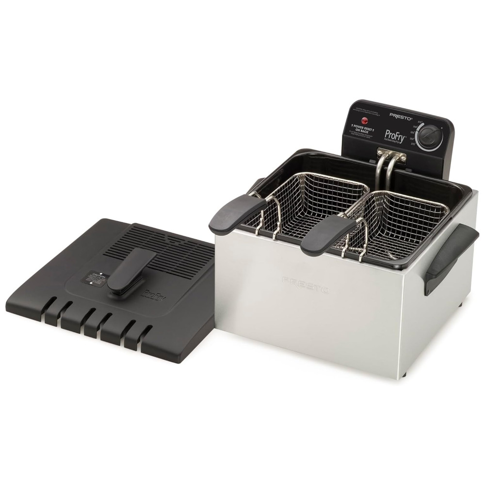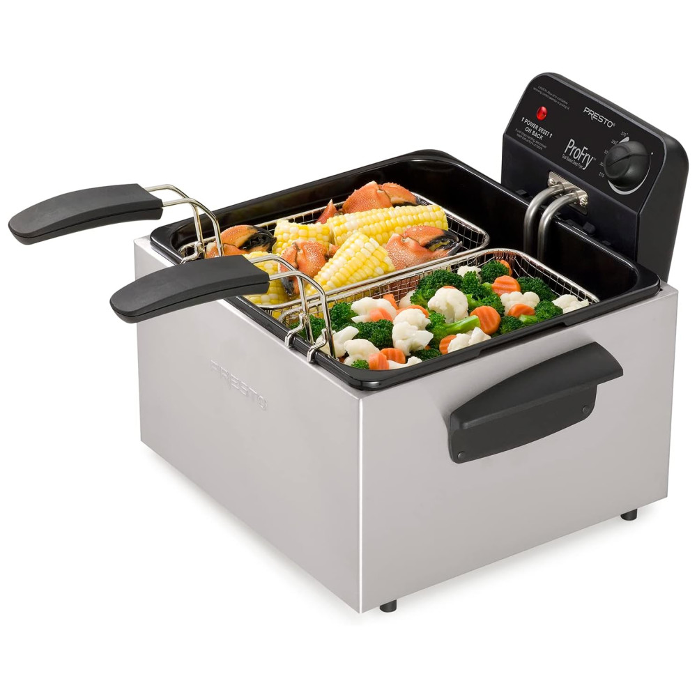 Apresentando a Fritadeira de Imersão com Elemento em Aço Inoxidável de Cesto Duplo Presto 05466: