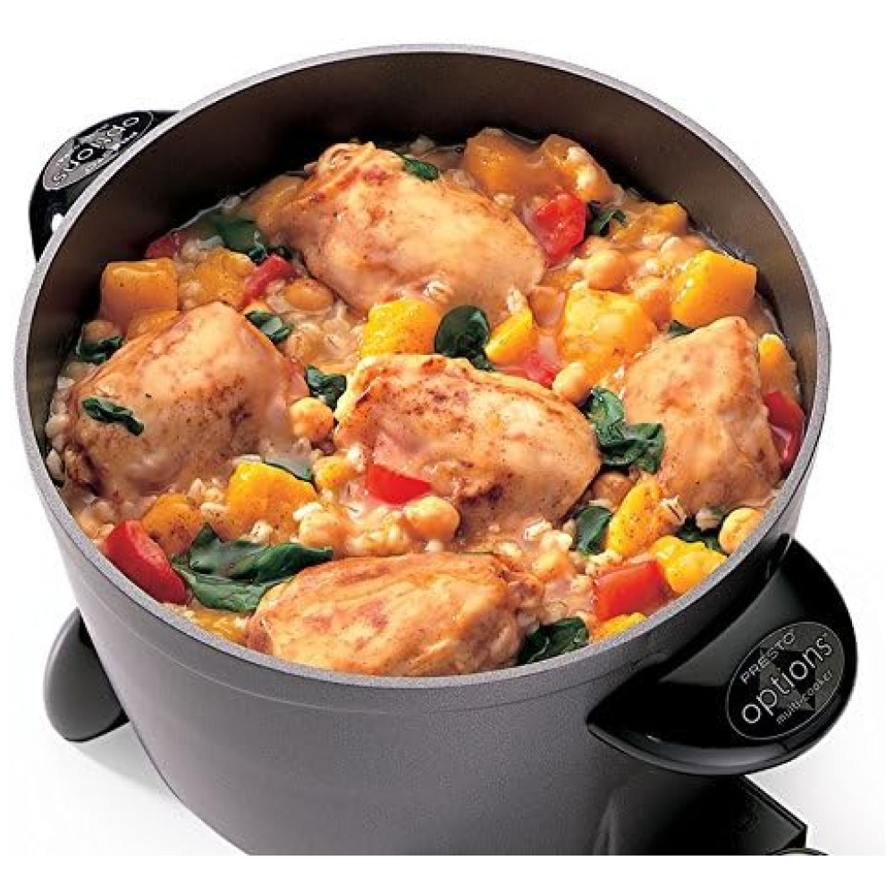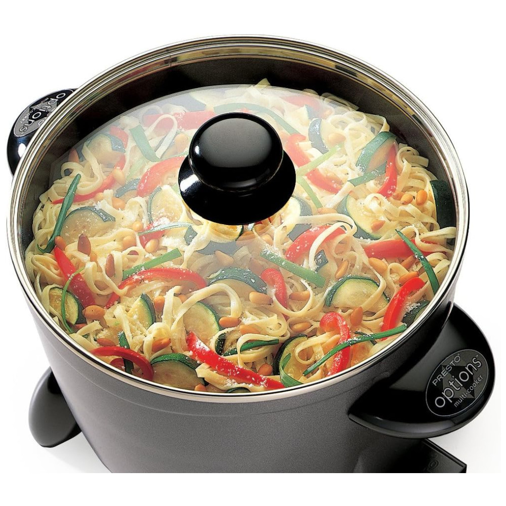 O acabamento antiaderente premium, tanto por dentro quanto por fora, facilita a limpeza e garante que os alimentos não grudem durante o cozimento. Com um controle mestre de calor, a temperatura de cozimento adequada é automaticamente mantida, enquanto a tampa de vidro temperado permite ver a comida enquanto ela cozinha.