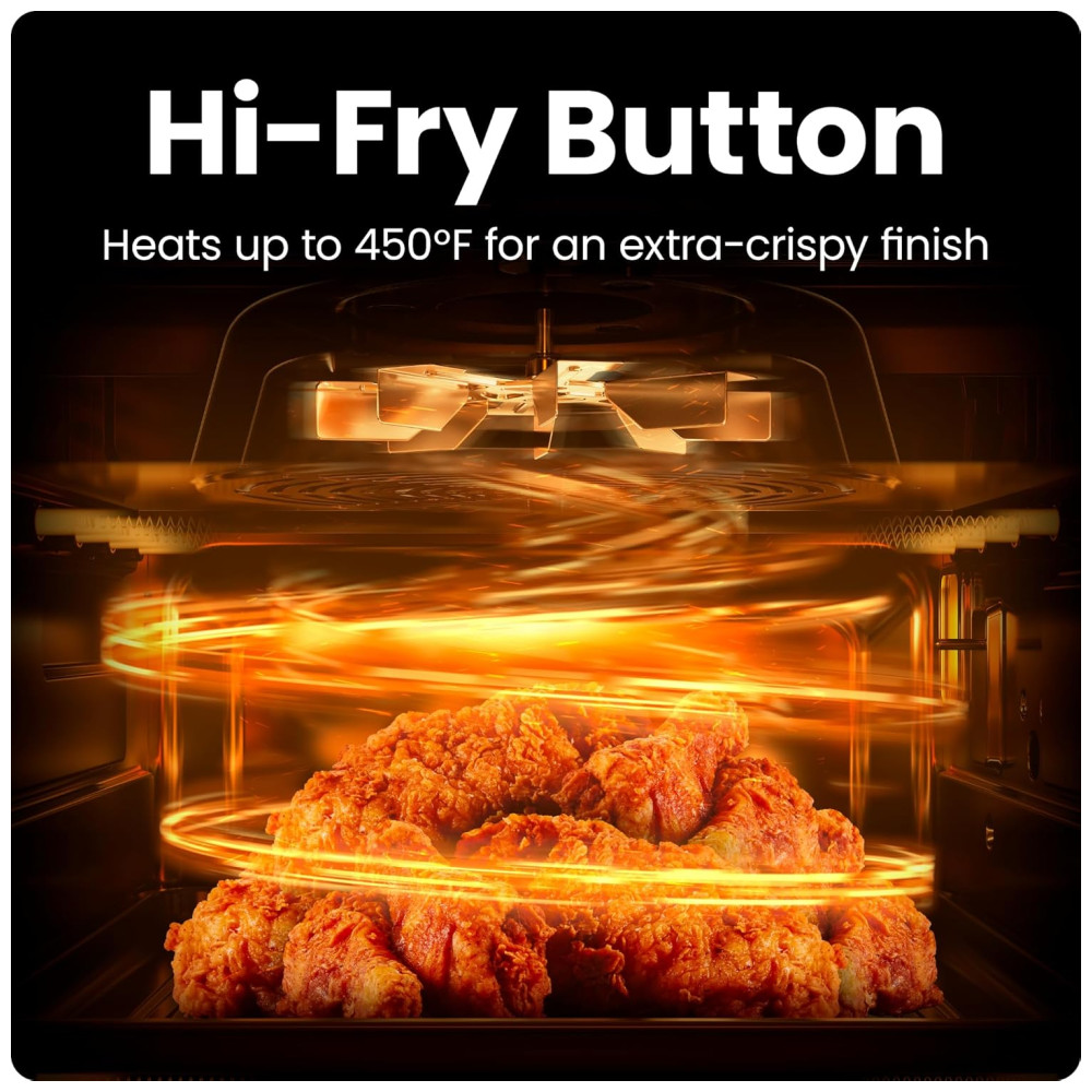 TECNOLOGIA HI-FRY A 230°C: Alcance a crocância perfeita nos seus pratos favoritos fritos no ar. Aumente a temperatura para 230°C nos últimos dois minutos de cozimento — perfeito para frango empanado e batatas fritas extra crocantes.