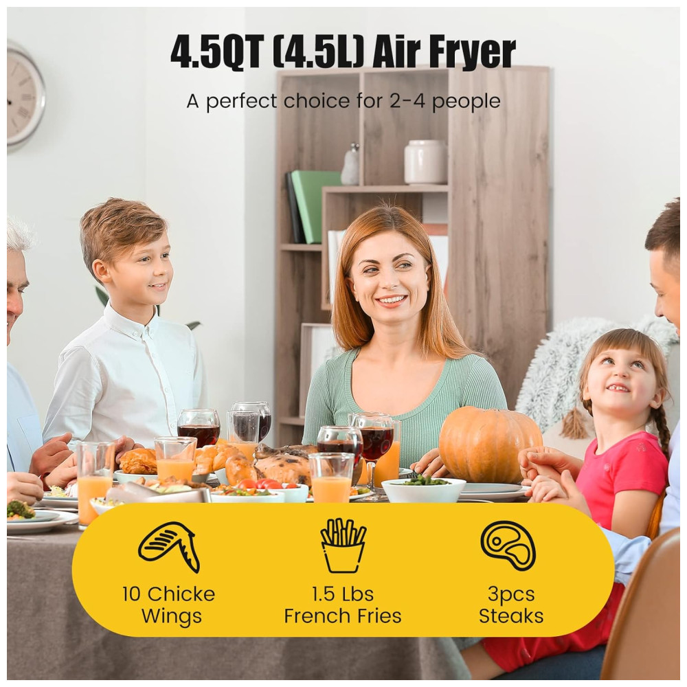 Tamanho Perfeito: Seja cozinhando para uma pessoa ou para a família, os 4,3 litros são o tamanho ideal. Frite a ar, grelhe, asse, asse, reaqueça e até desidrate – tudo em um único aparelho na sua bancada.