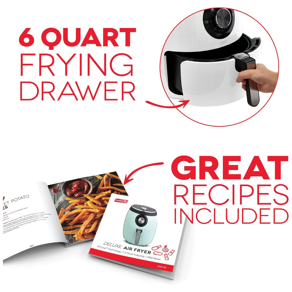 ALIMENTOS FRITOS MAIS SAUDÁVEIS: Desfrute de comida sem culpa com a Fritadeira Dash Deluxe. A tecnologia Aircrisp (em vez de óleo) reduz a gordura em 70-80% sem sacrificar o sabor dos alimentos fritos (sem mais cheiro residual horas depois de comer). Comprimento do cabo: 127 cm.