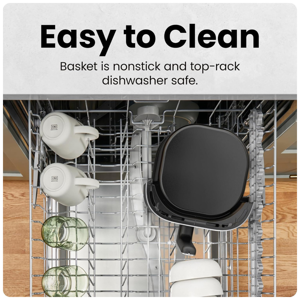 LIMPEZA SIMPLES: A cesta e a grade antiaderente de 3,8 L são compatíveis com a máquina de lavar louça, tornando a limpeza rápida e fácil. O acabamento preto fosco e elegante é atemporal e fácil de limpar com um pano úmido.