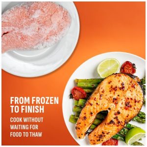 Sem Pré-Aquecimento: A tecnologia LUMINEX aquece até 204°C em apenas 2,4 segundos. O ar quente supercarregado e a luz radiante direta selam os sucos, aceleram os tempos de cozimento e criam um acabamento crocante e quente.