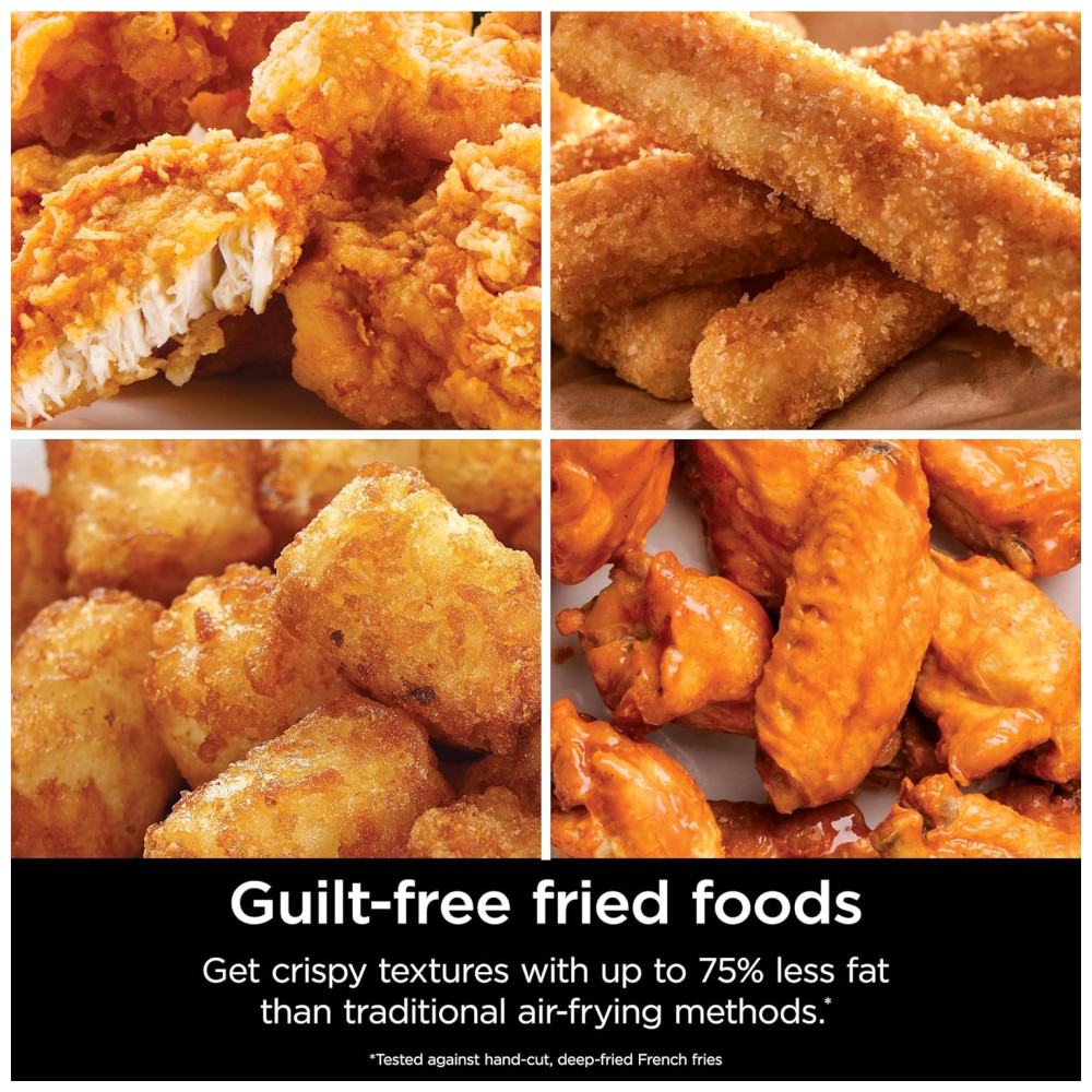 A Fritadeira Elétrica Ninja Pro XL AF181 oferece alta capacidade com cesto antiaderente de 6,2 litros, suporte para até 4 kg de frango ou 2,3 kg de batatas fritas por ciclo. Equipada com tecnologia Max Crisp, alcança temperaturas de até 230°C e circula ar superaquecido para resultados crocantes rapidamente, utilizando mínima quantidade de óleo, promovendo rendimento até 75% menor em gordura que métodos convencionais.