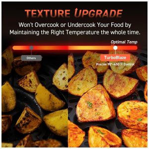 Crocante e Suculento em Minutos com a Tecnologia TurboBlaze: Experimente 5 velocidades exclusivas e mais rápidas de ventilador para resultados perfeitamente crocantes em minutos, superando as fritadeiras com motor AC tradicionais.