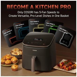 Descubra a praticidade e eficiência da Fritadeira COSORI 9 em 1 de 5,7 Litros e transforme suas refeições com facilidade e sabor!