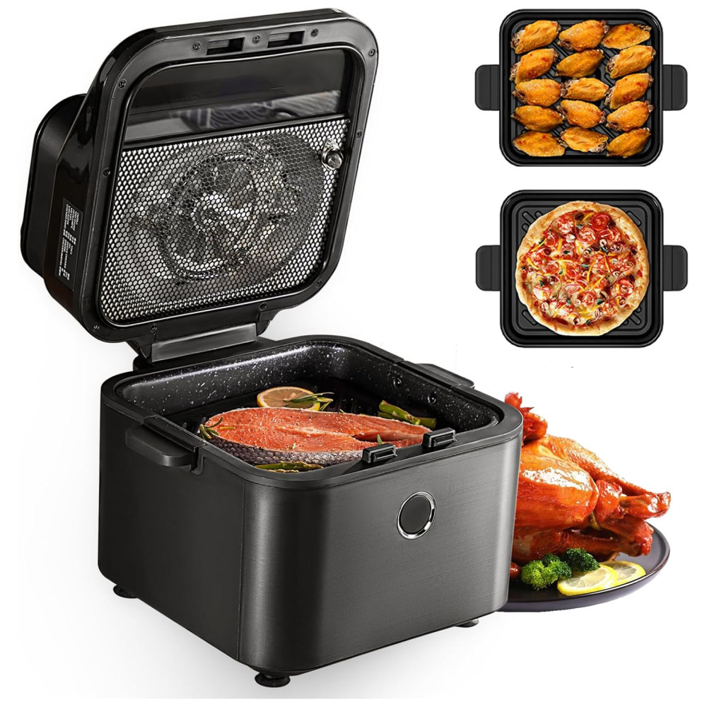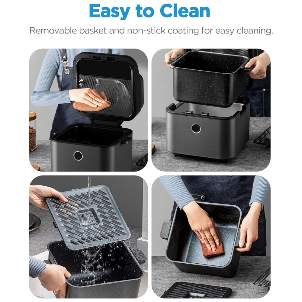 Fácil de Limpar: Tanto a cesta de fritura quanto a placa crocante possuem revestimento antiaderente, por isso, gordura e resíduos de alimentos não mancham facilmente a superfície e podem ser lavados ou limpos com facilidade.