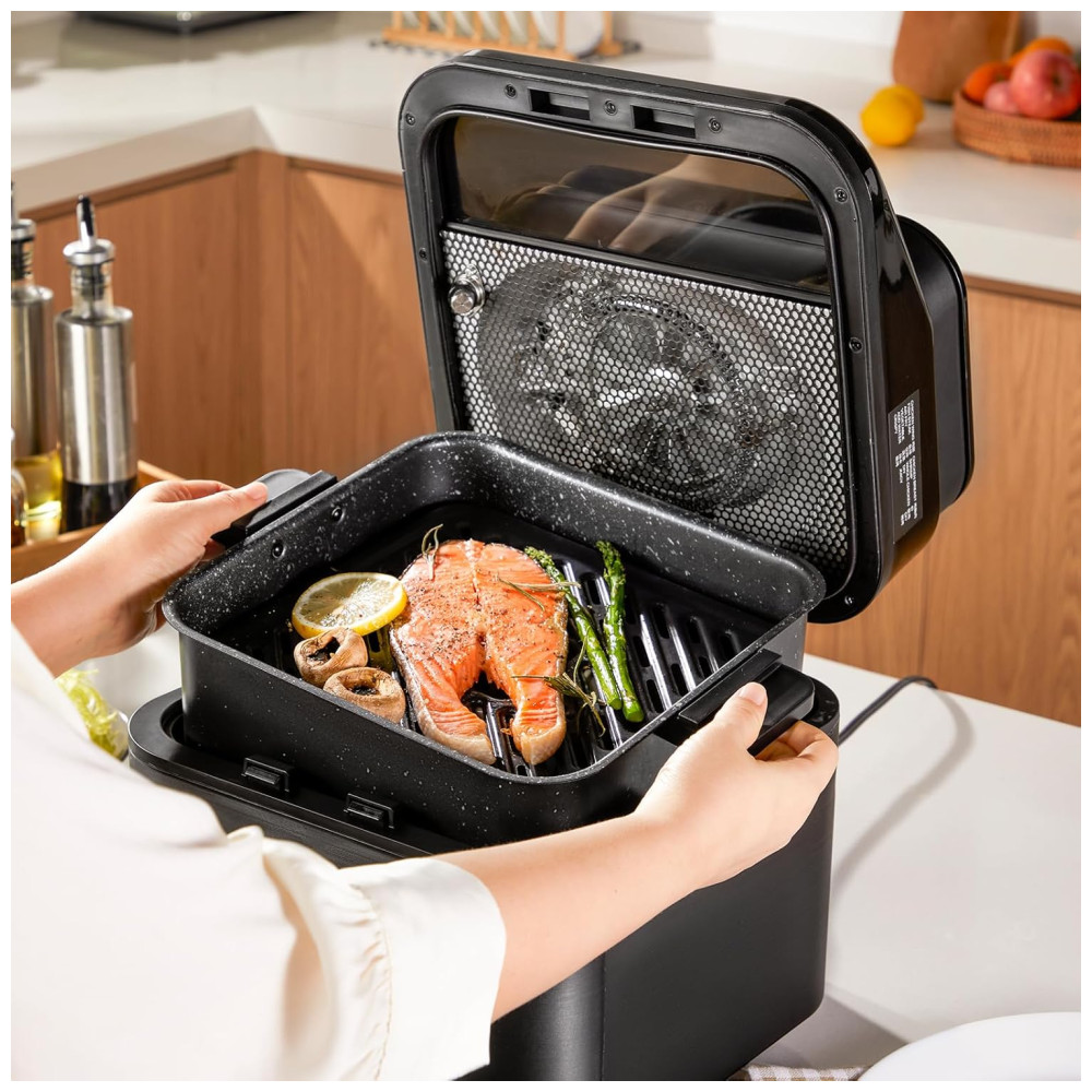 Grande Capacidade de 6,6 Litros: A grande capacidade de 6,6 litros permite cozinhar mais alimentos para 5-10 pessoas de uma só vez, em vez de cozinhar duas rodadas de alimentos quando há mais pessoas para jantar.