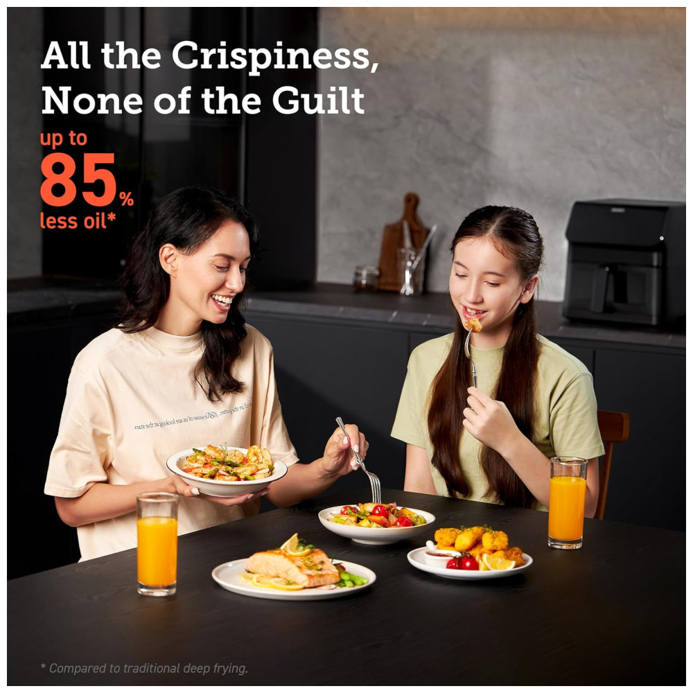 Capacidade Grande de 6,15 Litros: Mesmo tamanho, mas com maior capacidade do que as fritadeiras COSORI Pro II, cozinhe mais refeições deliciosas de uma só vez, perfeita para jantares em família ou encontros.