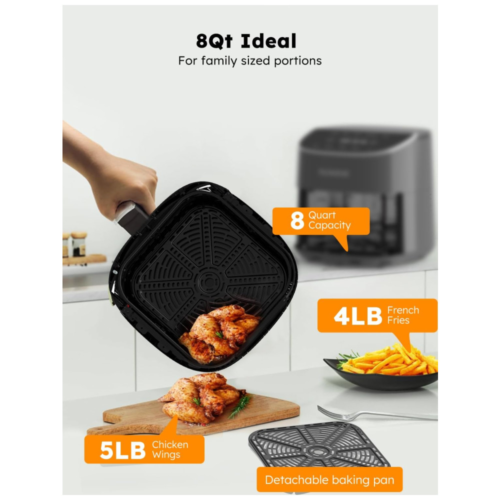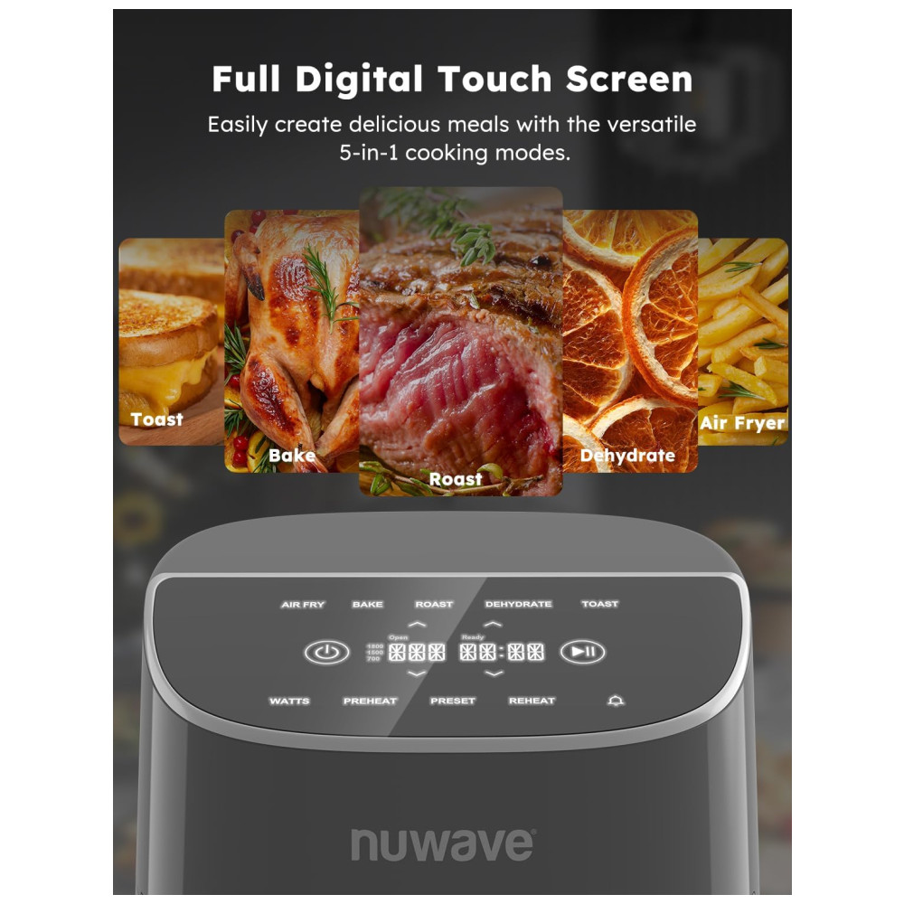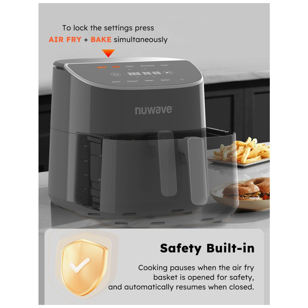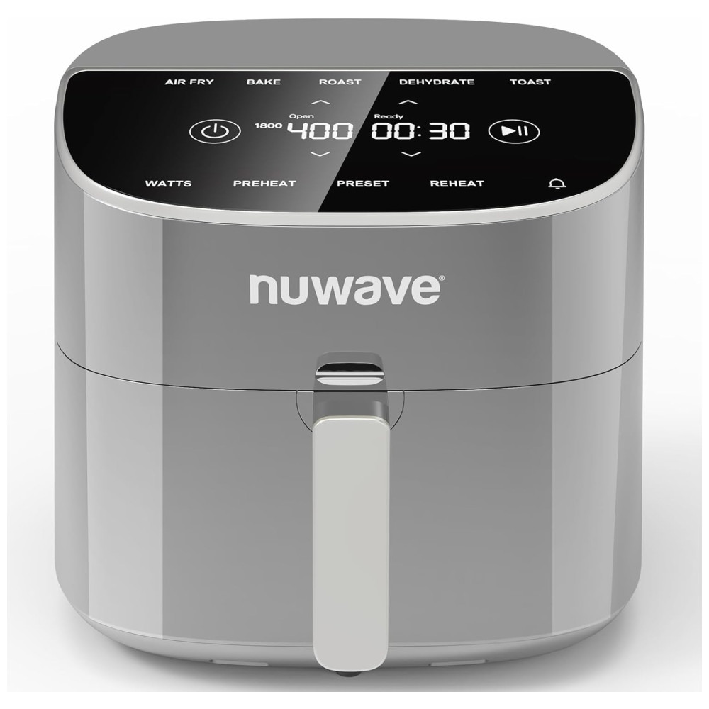 Fritadeira Elétrica Air Fryer 7.5L com Tela Digital Livre de PFAS 100 Predefinições e 50 Memória 110V 1800W Nuwave Cinza