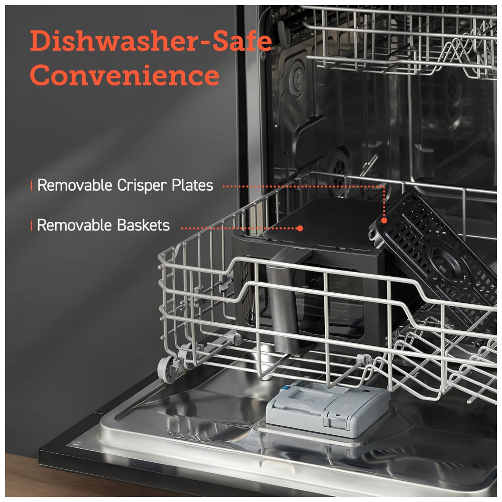 Comodidade Segura para Lava-louças: Com dois cestos antiaderentes, sua experiência de cozimento se torna descomplicada e fácil de limpar.