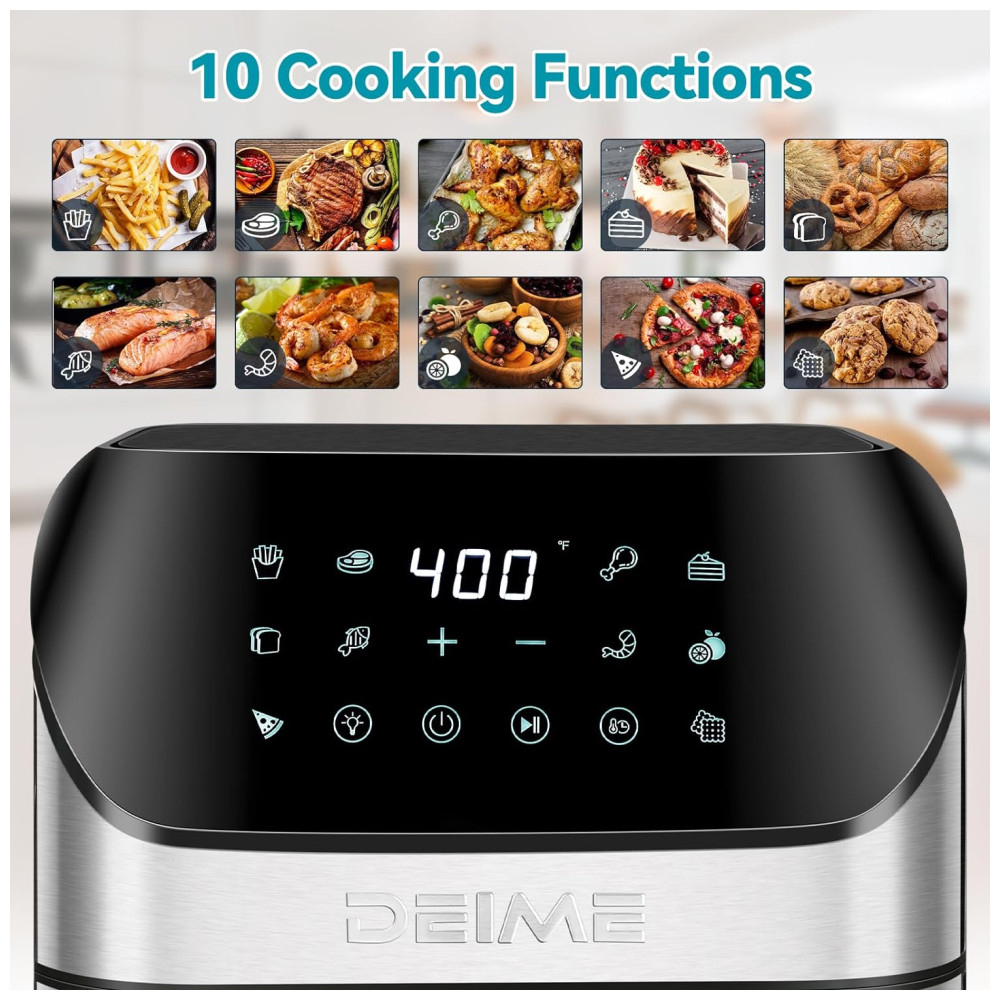 Fritadeira Elétrica Air Fryer 8 Litros com 10 Predefinições e Cesto Antiaderente 110V 1700W Deime Prata