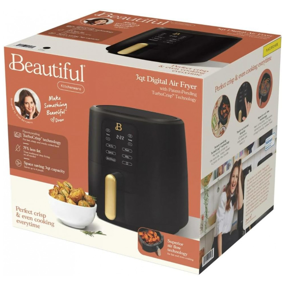 Fritadeira elétrica air fryer Beautiful 3L TurboCrisp preta black sesame 1200W 4 funções cesto antiaderente 110V