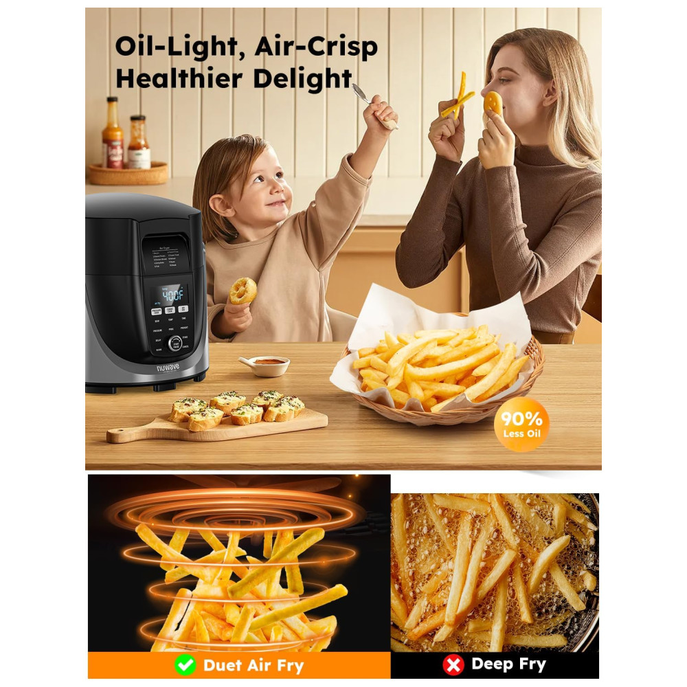 Transforme sua experiência culinária com o Nuwave Duet e aproveite a versatilidade de uma panela de pressão e fritadeira a ar em um só aparelho!