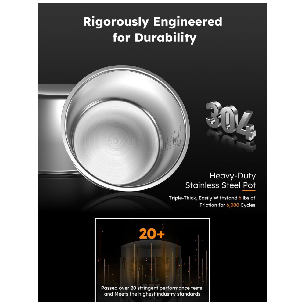 15 Recursos de Segurança: A panela de pressão elétrica inclui proteção contra superaquecimento, liberação automática de pressão e tecnologia Sure-Lock, garantindo que seja uma das panelas de pressão mais seguras do mercado.