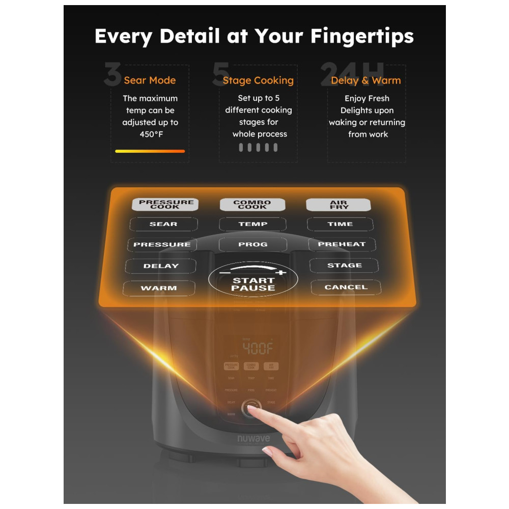 Fritadeira Elétrica Air Fryer e Panela de Pressão 540 em 1 56L com 3 Tampas Removíveis Tecnologia de Segurança Sure-Lock e 10 Acessórios 110V 1500W Nuwave Preto