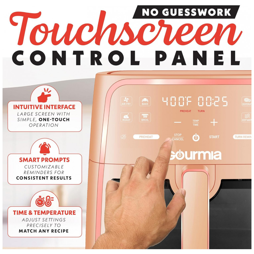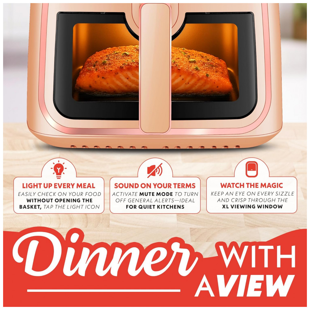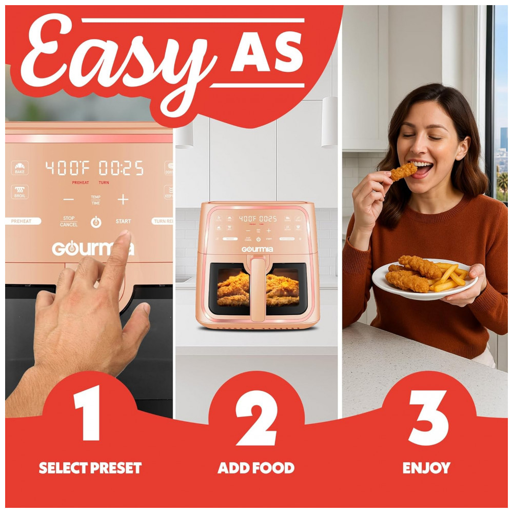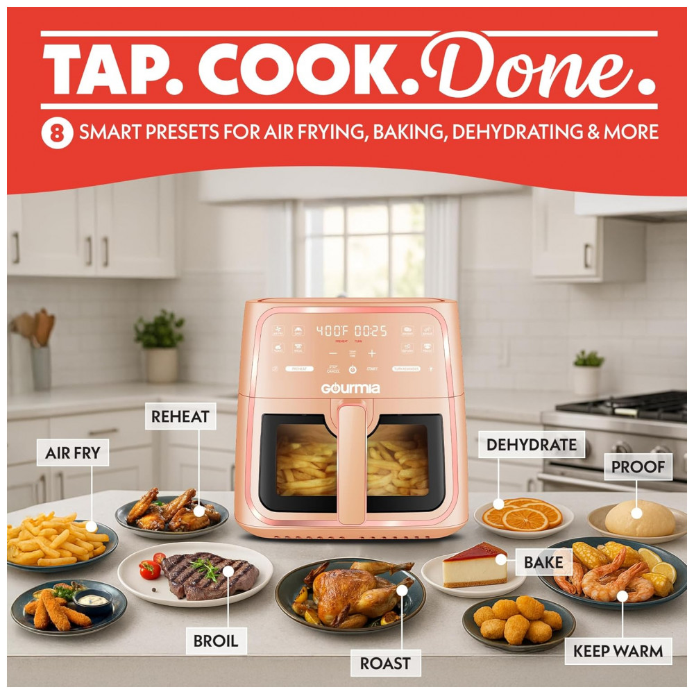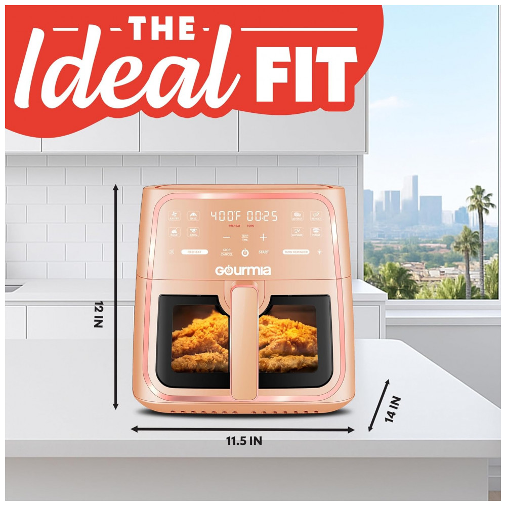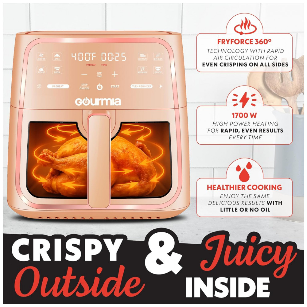 Fritadeira Elétrica Air Fryer Gourmia Pêssego 76L Janela com Luz 8 Programas FryForce 360 1700W 110V