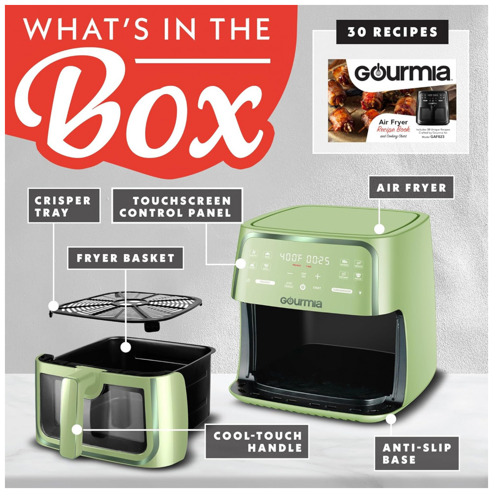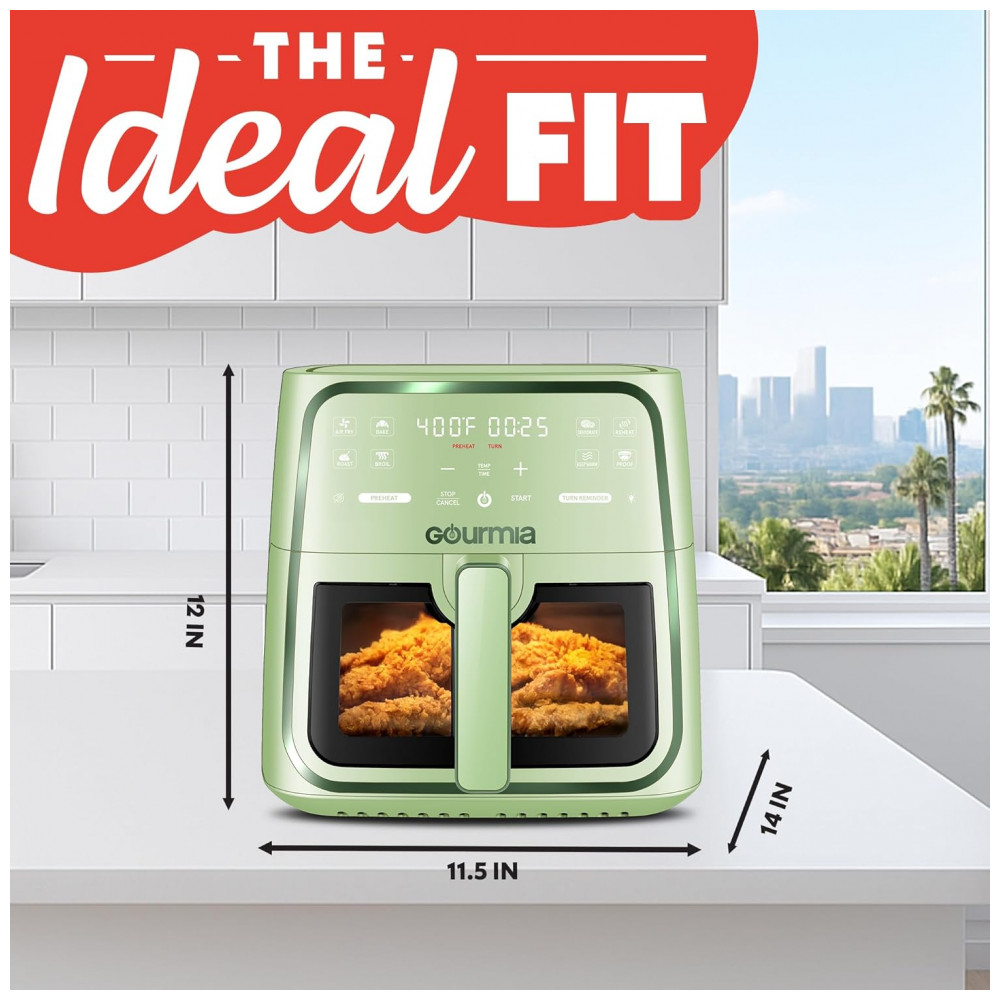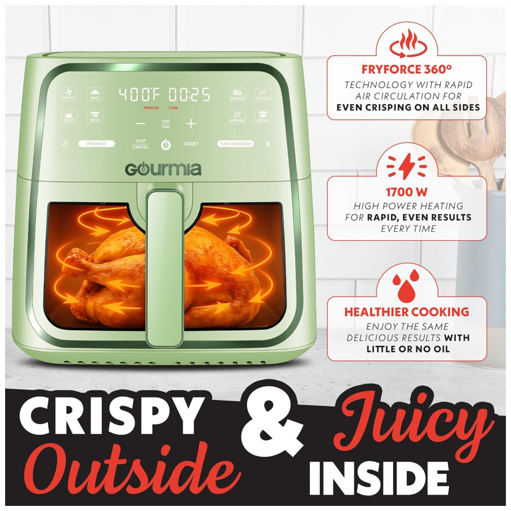 Fritadeira Elétrica Air Fryer Gourmia Verde 76L Janela com Luz 8 Programas FryForce 360 1700W 110V