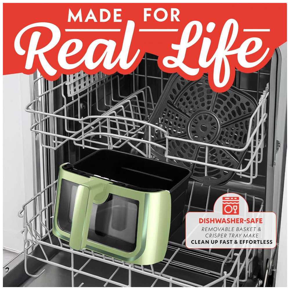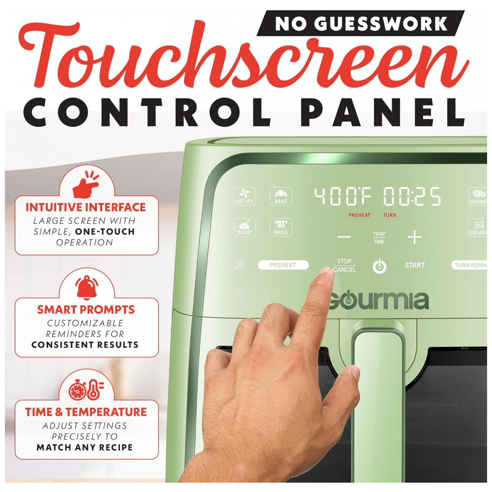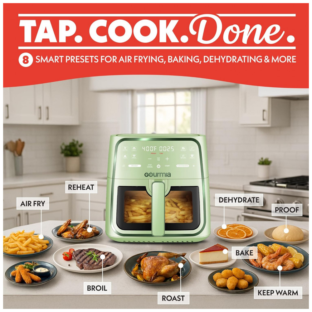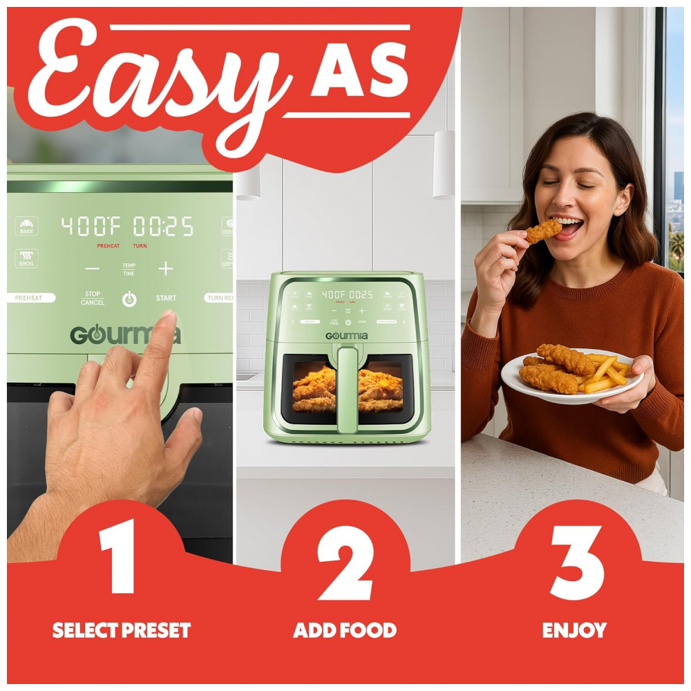 Fritadeira Elétrica Air Fryer Gourmia Verde 76L Janela com Luz 8 Programas FryForce 360 1700W 110V