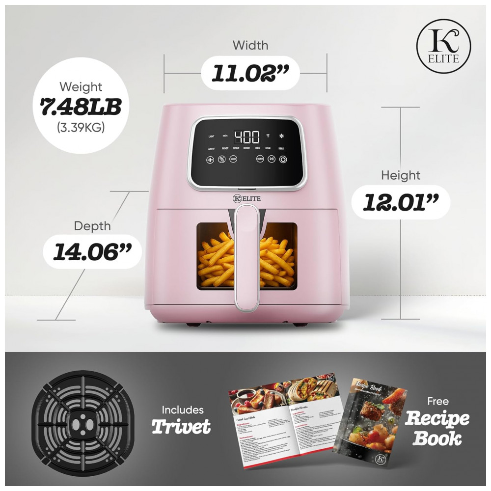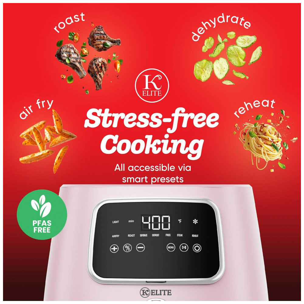 Fritadeira Elétrica Air Fryer Kitchen Elite Rosa 55L Digital 7 em 1 1500W 110V