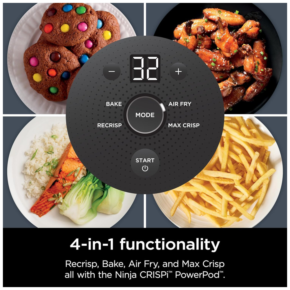 Fritadeira Elétrica Air Fryer Tudo em Um com 2 Recipientes de Vidro 3.7L e 1.4L e Tampas 110V 1500W Ninja Crispi FN101GY Cinza