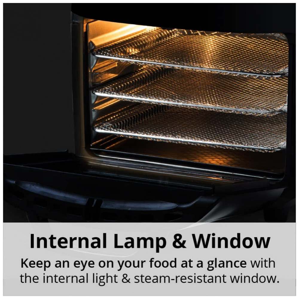 Capacidade de 10 Litros: Pode acomodar pizzas de até 30,5 cm, e a janela resistente a vapor e a lâmpada interna brilhante permitem que você acompanhe o preparo dos alimentos enquanto eles cozinham.
