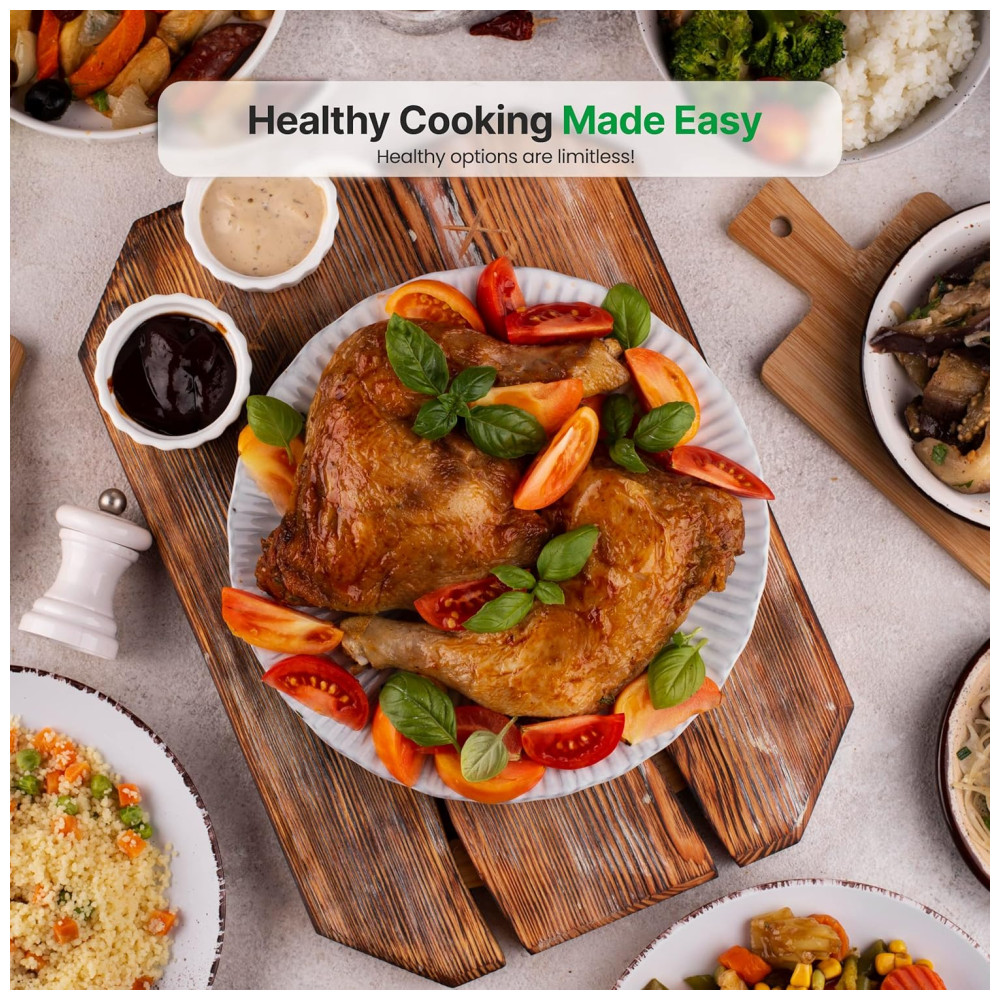 PREPARAÇÃO DE REFEIÇÕES SAUDÁVEIS: Cozinhar de forma saudável ficou fácil. Temperatura e tempo ajustáveis. A air fryer elimina a necessidade de óleo extra. As opções saudáveis são ilimitadas – Cozinhe, Asse, Grelhe, Cozinhe a Vapor, Toste e Frite ao Ar.