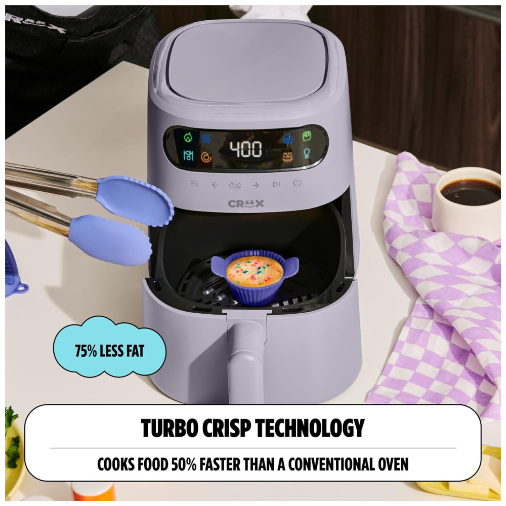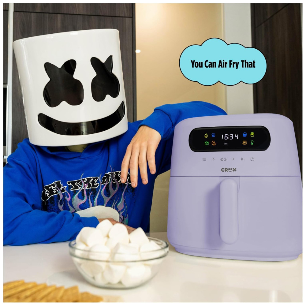 BÔNUS EXTRA PARA MAIS DIVERSÃO: Liberte sua criatividade e prepare jantares únicos que impressionarão seus amigos e família. Nossas fritadeiras modernas e divertidas vêm com a bandeja de crocância TurboCrisp (patente pendente) e 4 moldes de cupcake de silicone CRUX x Marshmello personalizados.