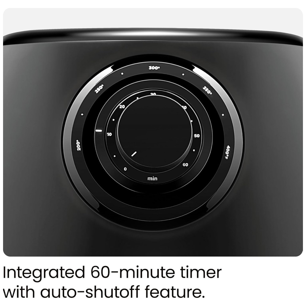 Resultados Perfeitamente Crocantes: Obtenha resultados crocantes para uma grande variedade de alimentos, com pouco ou nenhum óleo. Os botões duplos controlam tanto a temperatura quanto o tempo; o timer integrado de 60 minutos permite que você frite desde vegetais congelados até palitos de mussarela, frango ou batatas fritas, e até mesmo reaqueça a sobremesa de ontem. Sem preocupações com o cozimento excessivo – quando o timer termina, a fritadeira desliga automaticamente.
