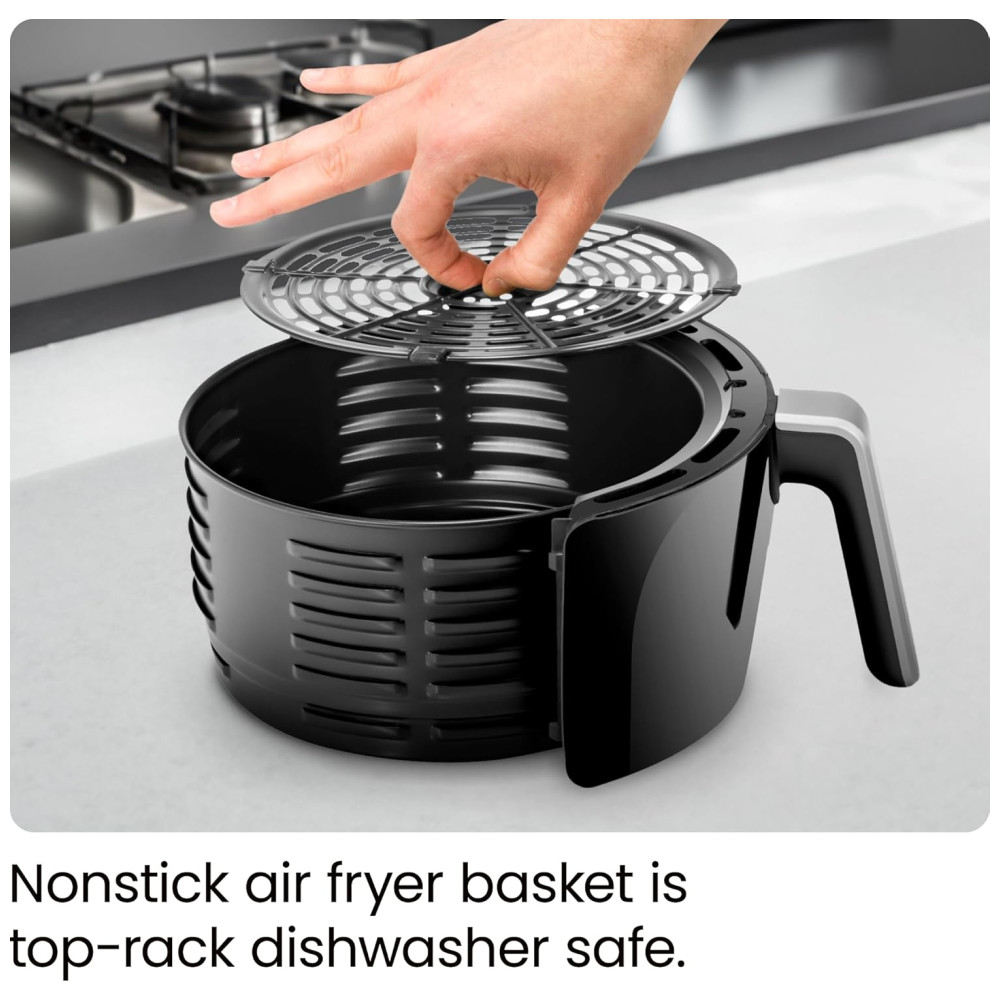 Fácil de Limpar: A cesta preta antiaderente é compatível com lava-louças, tornando a limpeza muito fácil. Ao lavar à mão, mantenha a fritadeira em ótimas condições usando esponjas e panos macios. (Esponjas abrasivas como Brillo não são recomendadas.)