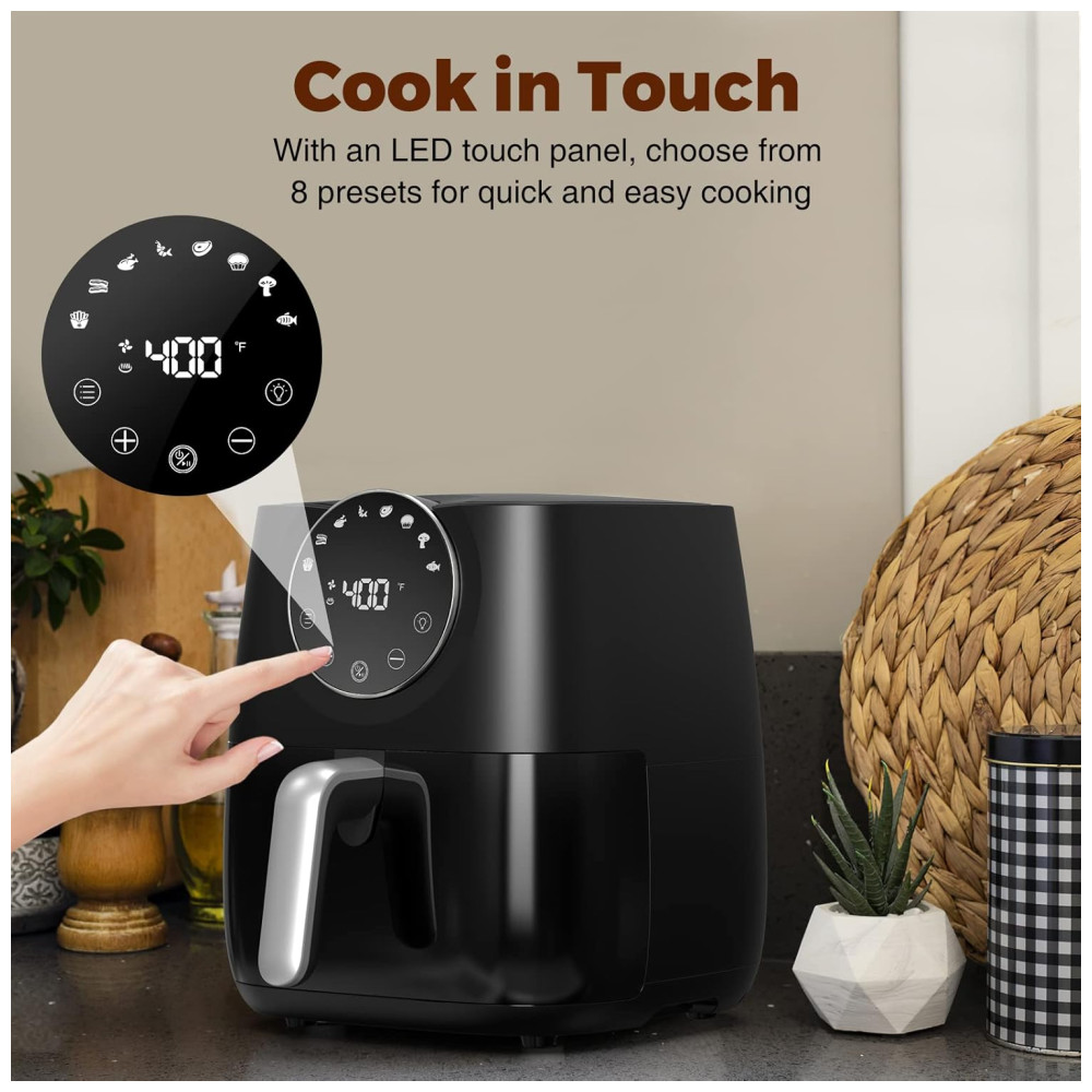 Funcionalidade 8 em 1: Escolha entre 8 modos de cozimento predefinidos (batatas fritas, bife, frango frito, camarão grelhado, peixe, bolo, vegetais) com um único toque. Controle facilmente as configurações de cozimento com uma interface totalmente digital. Personalize a temperatura (77°C a 204°C) e o tempo (1-60 minutos) para se adequar às suas receitas.