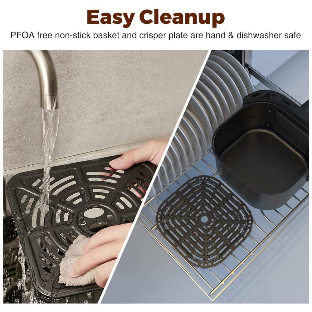 Limpeza Sem Bagunça: O cesto removível com revestimento antiaderente e a grelha também revestida são compatíveis com lava-louças, tornando a limpeza rápida e fácil.