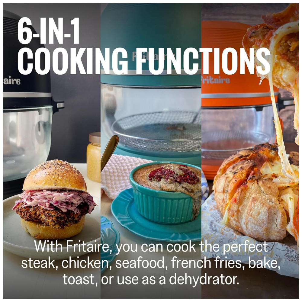 FUNÇÕES DE COZIMENTO 6 EM 1: Com o Fritaire, você pode cozinhar o bife, frango, frutos do mar, batatas fritas perfeitos, assar, torrar ou usar como desidratador.