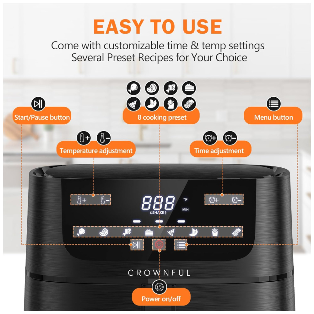 Revolucione sua cozinha com a Air Fryer CROWNFUL e aproveite refeições mais saudáveis e saborosas!
