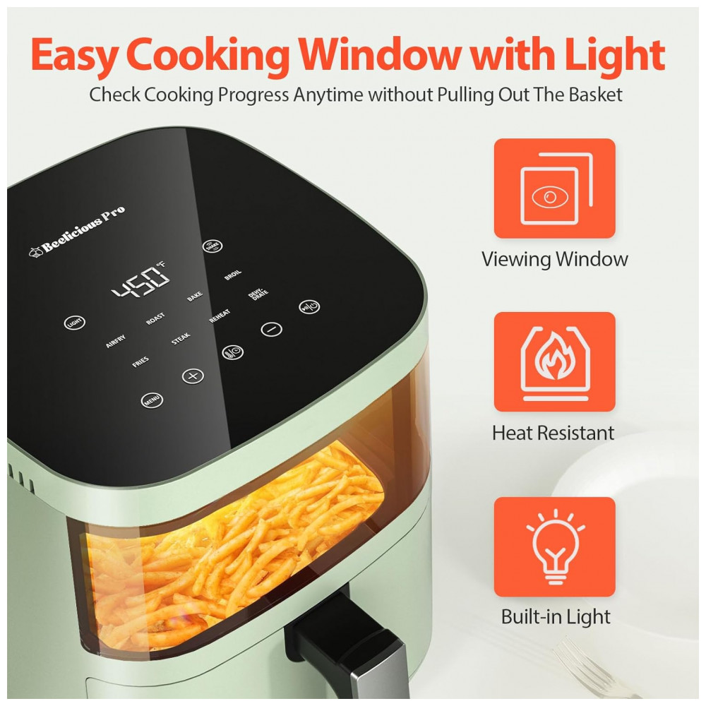 Fritadeira Elétrica Airfryer 8 em 1 37L com Janela de Visualização Painel Digital e Cesto Antiaderente Adequado de 2 a 4 Pessoas 110V 1550W Beelicious Verde