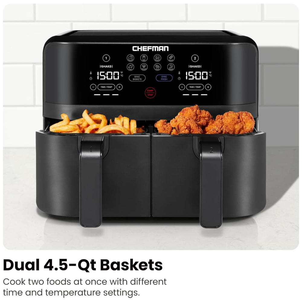 Fritadeira Elétrica AirFryer 9L com Painel Digital e Cesto Duplo 110V Chefman Preta